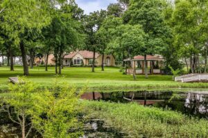 Amazing 10 acre horse farm located in River Park Ranch where you can raise your family and keep your horses at home. Once you enter through the stone column gates you’ll be enchanted by the stocked fishing pond and gazebo on your right and lush green pastures on your left. The house and improvements sit far off the road for maximum privacy.